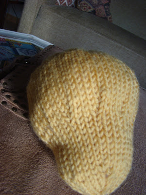 Voila. You have a fluffy warm hat. No itching here for sure. I am telling you that kids absolutely love a fleece lining in their hats. It never fails. If you are using cotton or a non-itchy yarn anyway, the lining just adds that extra warmth and squish. Lining a handknit hat just makes it that much better and that's hard to do.