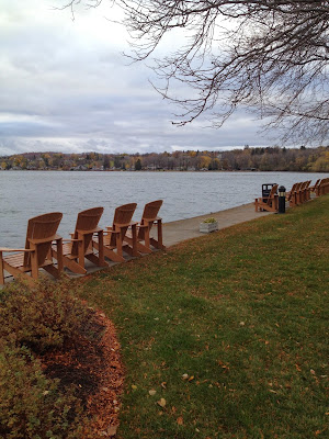 I noticed as I flew in that there was still a lot of remaining colorful fall foliage and green in the area. Here in Madison we are already heading into winter so that was nice to see. Canandaigua is in the Finger Lakes Region of New York and we stayed at The Inn on the Lake hotel. The hotel sat right on a lakefront and in fact my first floor room had a door that opened directly to a scenic lakeshore area. The weather wasn't ideal but I still made it outside everyday to explore and get a feel for the area. I was rained on a bit but it was worth it.
