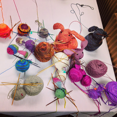 Friday started with my Sock Yarn Bunny Workshop. I had an enthusiastic group of bunny makers. We worked so hard and the class had an extended time after the lunch break. I wish all of my classes had that extra couple of hours. You can get so much more done with that amount of time and it is more relaxed. This group had the best time together! I was glad we took a photo. I don't want to forget this day of bunny knitting with this group.