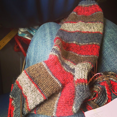 And when I got home I realized that I had finished the pair of men's socks for my son's upcoming birthday. I didn't feel like I got much knitting done but in the end I guess I did.